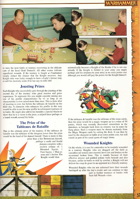 Now in White Dwarf 215 we are granted a nice little one shot of a full game created by none other then Mr. Stillmania himself. With complete rules, and card terrain. This is the lead up to Nigel's next Stillmania series: Questing for the Grail. A three part series showing the Stillmania doctrine for building his Bretonnian army. Which I will get to in due time.